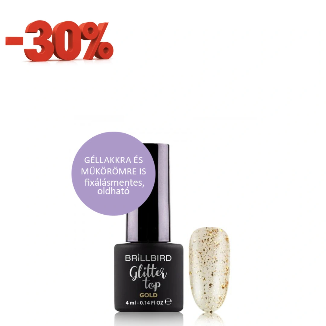 Főoldal Brillbird Alap és Fedő zselék GLITTER TOP - GOLD - 4ML