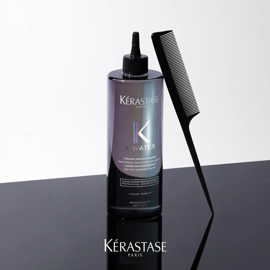 A Kerastase K Water egy exkluzív hajkezelés minden hajtípusra, amelynek célja hogy kiváló hidratálást és fényességet biztosítson. Nem tartalmaz vizet, csak glikolt és az aminosavakat, melyek speciális kombinációja, érintkezve a nedves hajjal aktiválódnak. A Kerastase K Water az új Lamellar technológián alapszik, amely azonnal csak az ápolást igénylő haj területeket célozza meg, és távol marad azoktól a területektől, amelyek nem igényelnek különösebb oda figyelést. Lágyítja a felületet, és a könnyű összetételnek köszönhetően a haj ragyogó, fényvisszaverő fényt és sima érzést kap. A Kerastase K Water regeneráló kezelés előkészíti a haját bármilyen hajformázási és szárítási eljáráshoz, azonnali eredményt biztosítva.