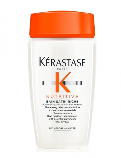 A Kérastase Nutritive Bain Satin Rich egy rendkívül tápláló hajfürdő nagyon száraz hajra. Száradásgátló polimereket tartalmaz, amelyek intenzíven táplálják és erősítik a hajat. A Nutritive Bain Satin Riche ezért az egyik legjobb sampon nagyon száraz hajra. Emellett a száraz haj egészségéhez és erősségéhez nélkülözhetetlen tápanyagokat tartalmaz, miközben nem nehezíti el a hajat.