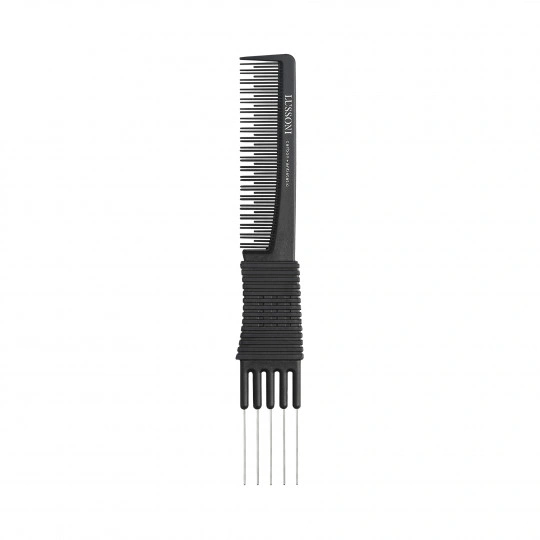 A Lussoni LC 200 fésűt hajformázásra tervezték. Alkalmas visszafésülésre és volumenhatásra, elengedhetetlen a frizurának a kívánt formához. A váltakozó hosszúságú fogak megkönnyítik a haj felső rétegének fésülését. A fémvilla felemeli a tincseket, és lehetővé teszi a frizura precíz befejezését.