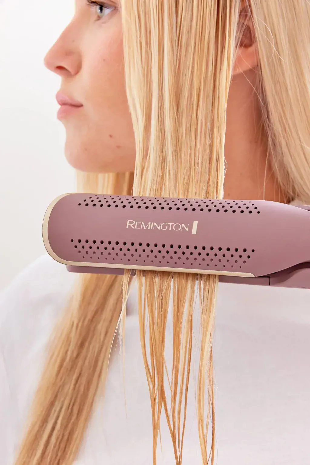 A Remington AIRvive™ 2 az 1-ben meleglevegős hajformázó, melyet úgy terveztünk, hogy keményen bánjon a szálkás hajjal, de gyengéd legyen a hajadhoz, örökre átalakítja a hajformázási rutinodat. Kétféle hajformázási móddal rendelkezik, így használható a nedves haj szárítására és simítására, valamint a száraz haj kisimítására és formázására. Nedves üzemmódban (Wet mode) a koncentrált meleg levegőáram alacsony hőmérsékletű hajformázó lapokkal kombinálva megszárítja és kisimítja a hajat extrém, károsító hő nélkül. Segít megőrizni a haj természetes nedvességét akár 24 órán keresztül[1], és rendkívül puha tapintásúvá teszi a hajat. Kapcsolj befejező üzemmódba (Finishing Mode), hogy csökkentsd a légáramlást, és növeld a formázólapok hőmérsékletét, hogy kisimíthasd a nehezen formázható tincseket, vagy két hajmosás között felfrissítsd a frizurádat. Az ionizált levegő segít kiküszöbölni a statikus feszültséget, és hajformázás közben azonnal lehűti a hajat, hogy 80%-kal simább eredményt érj el². A 10-szer nagyobb kerámiatartalommal4 rendelkező ultrasima formázólapok biztosítják, hogy a hajformázó könnyedén tudjon siklani a hajon, miközben hőre aktiválódó mikro kondicionálókat bocsát ki az egész napos szálkásodás elleni védelem érdekében3. Ráadásul nem csak egyenes frizurákat készíthetsz – az aktívan hűtött, ívelt burkolat segítségével nagyobb kontrollal kísérletezhetsz a rugalmas fürtökkel, tincsekkel vagy hullámokkal is.